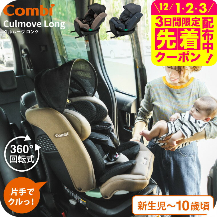よく一緒に購入されている商品コンビ スゴカル ミニモ プラス エッグショッ34,800円エルゴベビー オムニ ブリーズ 抱っこひも 19,360円~コンビ 爪やすり 赤ちゃん 電動 Combi 2,750円~ 商品詳細 <商品番号> グレージュ(BE):119364 ブルー(BL):119801 <JANコード> グレージュ(BE):4972990193641 ブルー(BL):4972990198011 <商品説明> ■使用期間 【チャイルドモード】 後向き:身長40〜87cmまで 前向き:身長76cmかつ月齢15カ月以上〜105cmまで ※体重18kgを超えるお子さまには使用できません。 【ジュニアモード】 身長100〜135cmまで (参考:新生児〜10才頃) ■ISOFIX固定タイプ ■安全基準R129適合 ■らくらく360度ターン。 ■新生児〜10才頃まで使用できるロングユース。 ■高さを抑えた低座面設計で天井までのスペース広々。 ■5段階リクライニング 後ろ向きでも前向きでも、5段階リクライニング。赤ちゃんを快適な姿勢に保てます。 ■乗せ降ろしの時も5段階リクライニング シートを横向きにした時も5段階リクライニングできるので自然な姿勢で乗せられます。 ■ラク乗せポジション ドア側にくるっと回すとシートが簡易ロックされるので、安心して赤ちゃんの乗せ降ろしができます。 ■ずっとフィット構造 スクスク成長する赤ちゃんの頭の位置や身長に合わせて、ヘッドレストは11段階調整できるから、安心してゆったりくつろげます。 幌と肩ベルトも連動して位置が変わるので、幌は常に快適空間をキープ、面倒なベルト位置の調節もラクラク。 ■コンビの超・衝撃吸収素材「エッグショック」でわずかな衝撃も吸収。インナークッション頭部に搭載。 ■サイドプロテクションアドバンス 産まれたての赤ちゃんの頭を側面の衝撃からもしっかり守ります。 ■エアスルーサンシェード 日差しをやわらげ、赤ちゃん快適! ■3Dメッシュ生地 サラサラの心地よさで快適!インナークッション、シート(頭部、背面、座部)に搭載! ■洗濯機丸洗いOK シートはすべて洗濯機で丸洗いできるので、いつでも清潔&快適です。 <セット内容> チャイルドシート <素材・材質> 本体:ポリプロピレン シート地:ポリエステル <保証期間> ご購入日から1年(コンビあんしん延長保証登録で4年) <生産国> 中国 <安全規格> UN R129/03 適合 <対象月齢> 新生児〜10才頃(身長40cm〜135cmまで) <本体サイズ> (後向き時)幅44.5×奥72.5〜73×高さ64〜71cm (前向き時)幅44.5×奥56.5〜62×高さ70〜91.5cm <本体重量> 14.2kg メーカー希望小売価格はメーカーカタログに基づいて掲載しています。 類似商品はこちらコンビ ジョイトリップ アドバンス for K23,499円~コンビ THE S ISOFIX エッグショッ66,000円コンビ クルムーヴ コンパクト エッグショック60,800円コンビ クルムーヴ エッグショック CA チ50,380円コンビ ジョイトリップアドバンス ISOFIX18,715円コンビ ジョイトリップ アドバンス プラス 38,600円コンビ ジョイトリップ アドバンス プレミアム43,500円アップリカ クルリラ プライト / ナイトグ58,000円リーマン CG031 ビットターンR129 チ33,796円新着商品はこちら2025/11/22アップリカ 即納 レインカバー タイプ5 Ap4,950円2025/11/20\KATOJI 予約販売12,800円/カトー19,800円2025/11/15MOJI イッピーエッセンス ベビーチェア Y34,650円再販商品はこちら2025/11/29リッチェル ひんやりしないおふろマット R ピ2,970円2025/11/29リーマン CG031 ビットターンR129 チ33,796円2025/11/27カトージ Joie バウンサー ドリーマー /13,800円2025/12/01 更新 抱っこしながらクルッとラクに乗せ降ろしなが〜く使えるロングユース設計 コンビ クルムーヴ ロング R129 エッグショック EA 1台で新生児から10歳頃まで長く使える(※1)「クルムーヴ」のロングユースモデルが誕生しました!シートをセットしたら、赤ちゃんを抱っこしたままでも片手でクルッと回転させてラクに乗せ降ろしできます。高さを抑えた低座面設計で、軽自動車やコンパクトカーにもおすすめ。赤ちゃんが座ったあとも5段階リクライニングできるので、いつでも自然な姿勢で乗せられて赤ちゃんもいつでも快適です。 抱っこしながらクルッとラクに乗せ降ろしママ1人でも使いやすい360°回転シート クルムーヴロングは、両側の手が届きやすい位置にサイドレバーがあります。シートが360°回転するから、サイドレバーを押したら軽い力でクルッと回転。ママ1人でも赤ちゃんを抱っこしたままラクに乗せ降ろしできます。 低座面設計だから天井までスペース広々軽自動車やコンパクトカーにオススメのサイズ感 後ろ向きセットで高さ64~71cm、前向きセットで高さ70~91.5cmと、軽自動車やコンパクトカーでも扱いやすいコンパクトなサイズ感。天井までのスペースが広く、乗せる時もママも赤ちゃんもラクな姿勢です。 座った後も5段階リクライニングOKいつでも快適で自然な姿勢で乗せられます 乗せる前はもちろん、座った後も手前部分を引き出すと簡単にリクライニングできます。角度は5段階で調節できるので、いつでも赤ちゃんが快適な自然な姿勢で乗せられます。 新生児から10才頃までなが〜い期間使える!成長に合わせて11段階調節でき