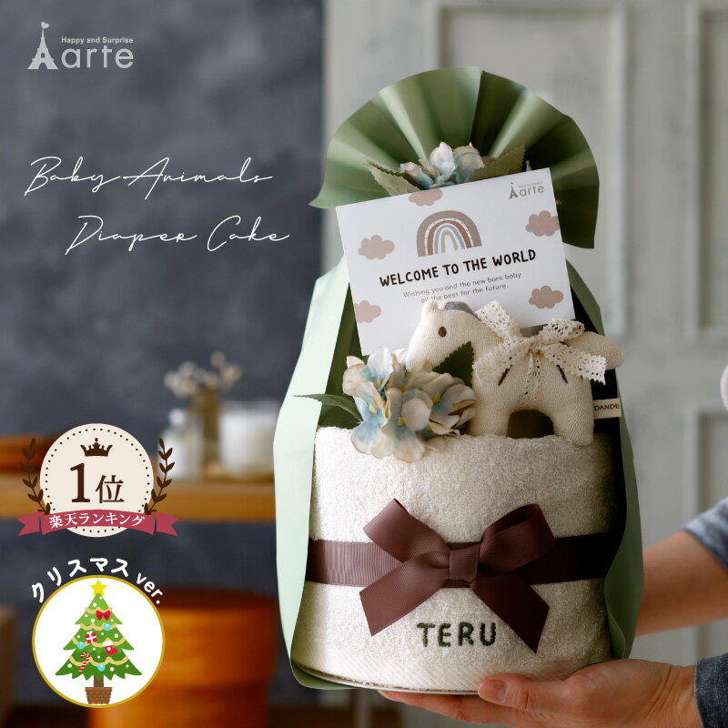 おむつケーキ 出産祝い 男の子 女の子 名入れ オーガニック ベビーギフト クリスマス おもちゃ 日本製 刺繍 無料 100日祝い ナチュラル おしゃれ 安心 1歳 タオル付 出産祝いギフト 人気 ベビーアニマル オムツケーキ 2段 ランキング 5000円 2人目 送料無料