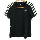 アディダス 半袖Tシャツ クライマライト ストレッチ スポーツ トップス 黒 白 レディース OTサイズ ブラック×ホワイト adidas 【中古】