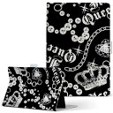 HUAWEI MediaPad M5 Pro Wi-Fiモデル CMR-W19 Lサイズ 手帳型 タブレットケース カバー 全機種対応有り レザー フリップ ダイアリー 二つ折り 革 007905 黒 ブラック クラウン 王冠 模様