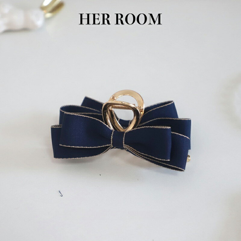 エレガントネイビーリボンヘアクリップ ゴールドステッチアクセント メタルフレーム 30 代レディース オフィス通勤 フォーマルコーデ 自己へのご褒美 誕生日ギフト リボン繊細 ゴールド パーティーアクセ 日常アクセ 繊細デザイン エレガントスタイル ギフト
