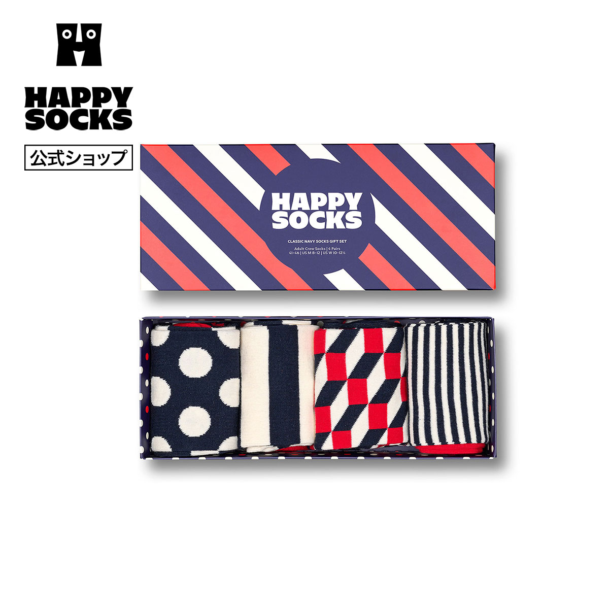 Happy Socks 公式 【GIFT BOX】【4足セット】クルー丈 ソックス クラシック ネイビー / ハッピーソックス ソックス 靴下 メンズ レディース ユニセックス ギフト プレゼント 柄 オシャレ
