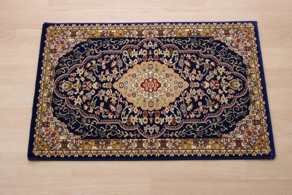 トルコ製 ウィルトン織り 玄関マット ベルミラ ネイビー 約60×90cm(代引不可)【送料無料】