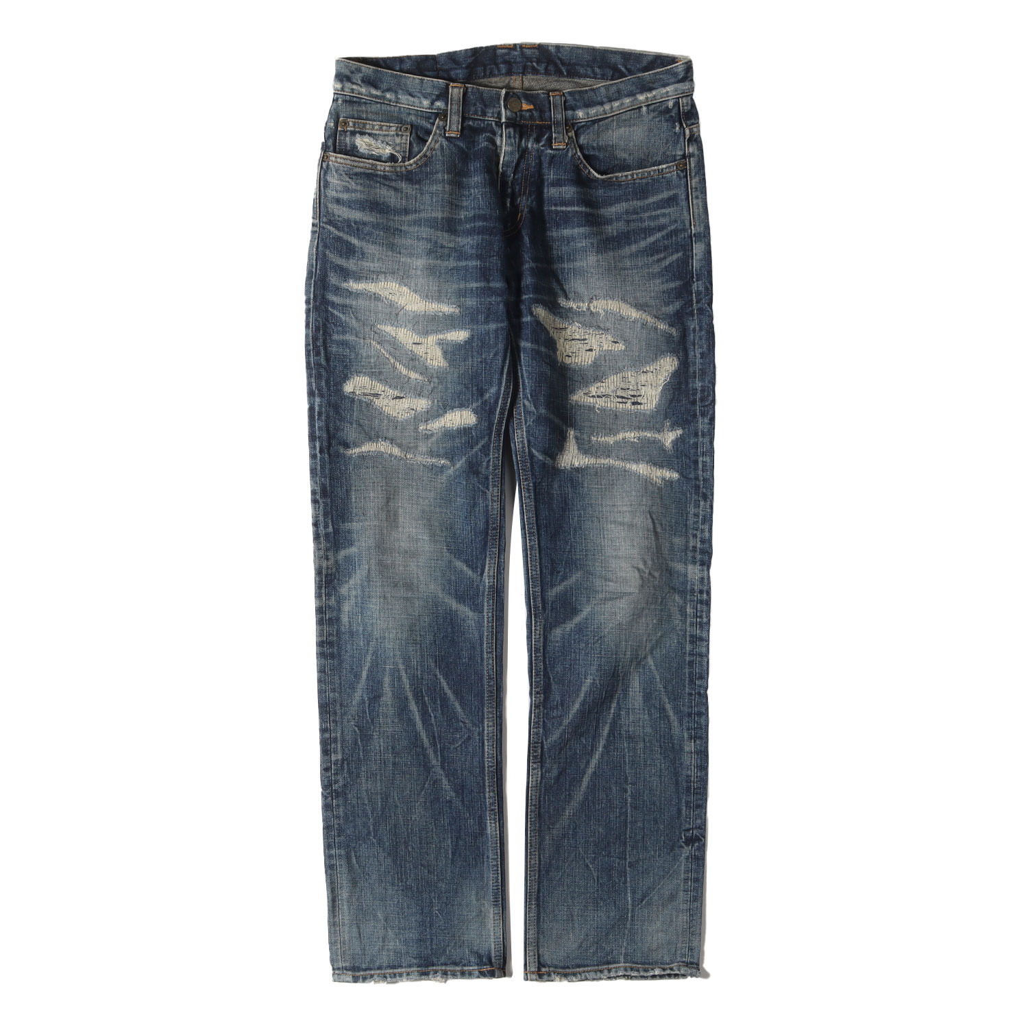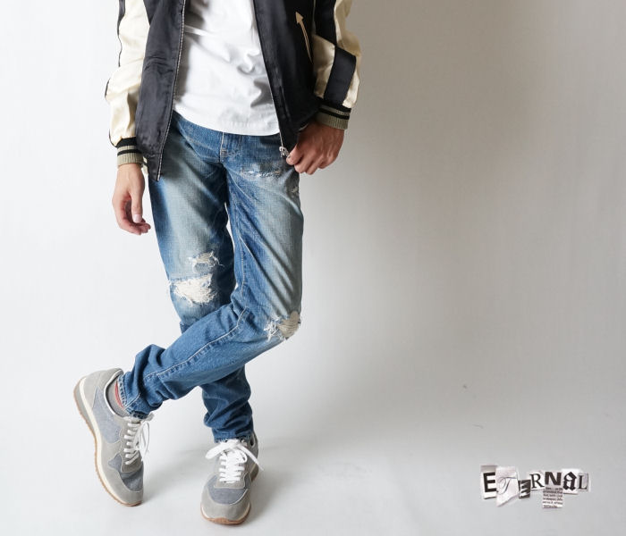 50%OFF ETERNAL エターナル 52202k テーパードスキニー 5ポケットデニムパンツ クラッシュリペア加工 岡山児島製