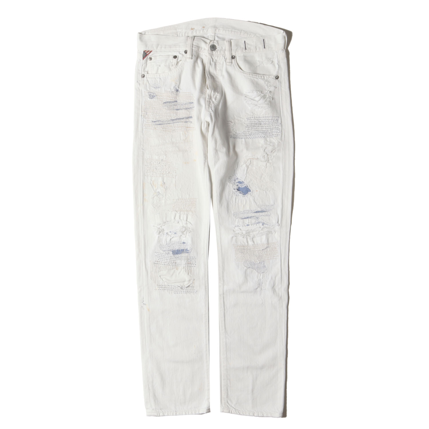 RRL ダブルアールエル パンツ サイズ:28×30 / クラッシュリペア加工 スリム デニムパンツ / インディゴ / ラルフローレン / ボトムス ジーンズ ジーパン