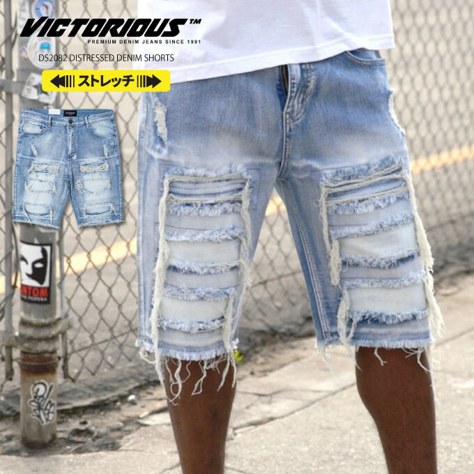 VICTORIOUS ヴィクトリアス 【ディストレスド デニム ショーツ】 ストレッチ デニムパンツ ダメージ ウォッシュデニム ハーフパンツ ヴィクトリアス 伸縮 ストレッチパンツ メンズ ズボン