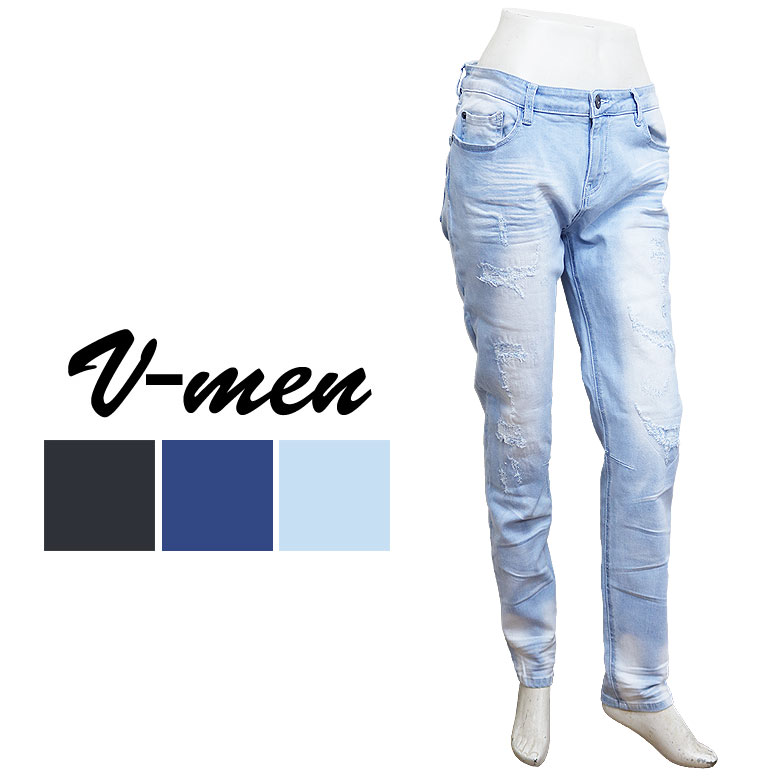 【V-men】ブイメン ストレッチデニム ジーンズ メンズ スリム リメイク加工 スキニー ヴィンテージ加工 クラッシュ リペア加工 ストレッチ