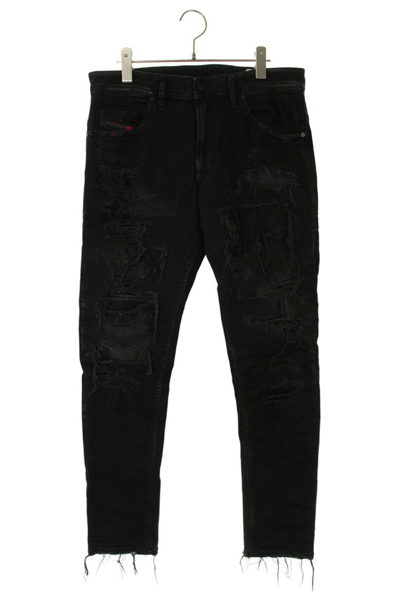 ディーゼル DIESEL サイズ:W32 L30 THOMMER クラッシュリペア加工スキニーデニムパンツ(ブラック)【120152】【BS99】【メンズ】【中古】bb223#rinkan*B