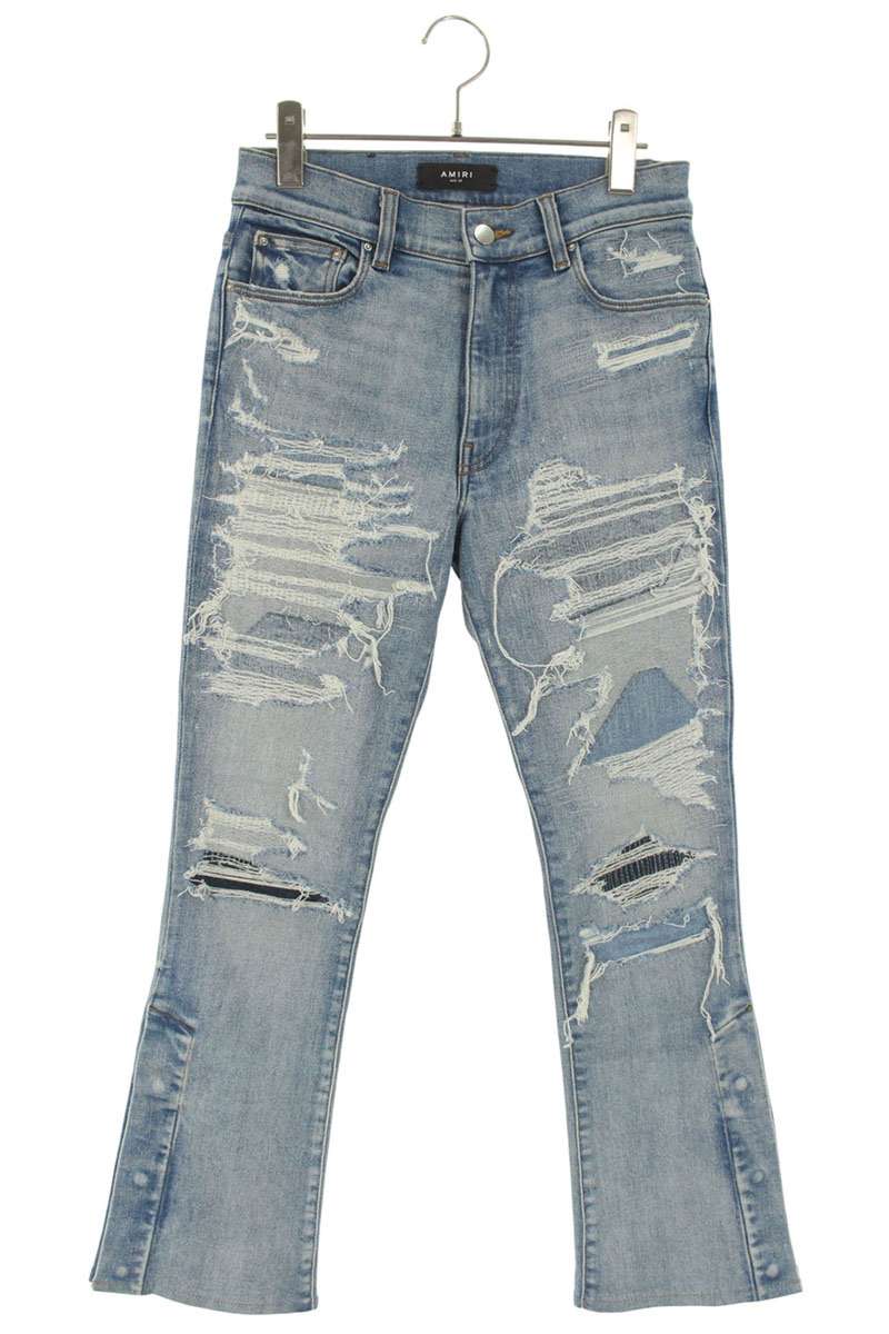アミリ AMIRI サイズ:25インチ クラッシュリペア加工 フレアデニムパンツ(インディゴ)【801152】【BS99】【レディース】【中古】bb87#rinkan*A