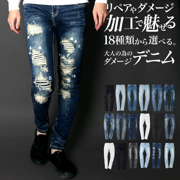 ▲送料無料▲ スキニーパンツ デニムパンツ メンズ ストレッチ ダメージ クラッシュ【ハードクラッシュスキニーパンツ】メンズデニム ジーンズ 綿 コットン 伸縮性 美脚 スリム 細身 無地 ハードクラッシュ リペア 大人 カジュアル aa-2974