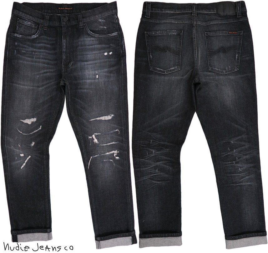 Nudie Jeans co/ヌーディージーンズ LEAN DEAN/リーンディーン SMASHING BLACK(シマシング ブラック) comfort stretch denimクラッシュ&リペア・ストレッチスキニーブラックデニムパンツ/ブラックジーンズ