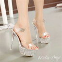 厚底サンダル クリアサンダル クリアヒール ハイヒール レディース キャバ 夏コスプレ ヒール高14cm 大きいサイズ/美脚セクシーハイヒール インポート脚長効果 前厚トゥ/クリアソール キラキラサンダル/ゴージャスエレガント