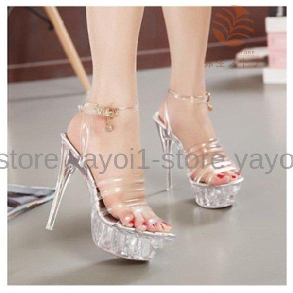 厚底 サンダル クリアサンダル クリアヒール ハイヒール レディース キャバ コスプレ ヒール高14cm 大きいサイズ 美脚 ハイヒール インポート脚長効果