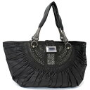 【中古】クリスチャンディオール トートバッグ ショルダー ギャザー レザー ブラック Chrstian Dior [送料無料]
