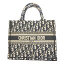 【5id4461】クリスチャンディオール トートバッグ オブリーク ブックトート キャンバス ネイビー【中古】レディース