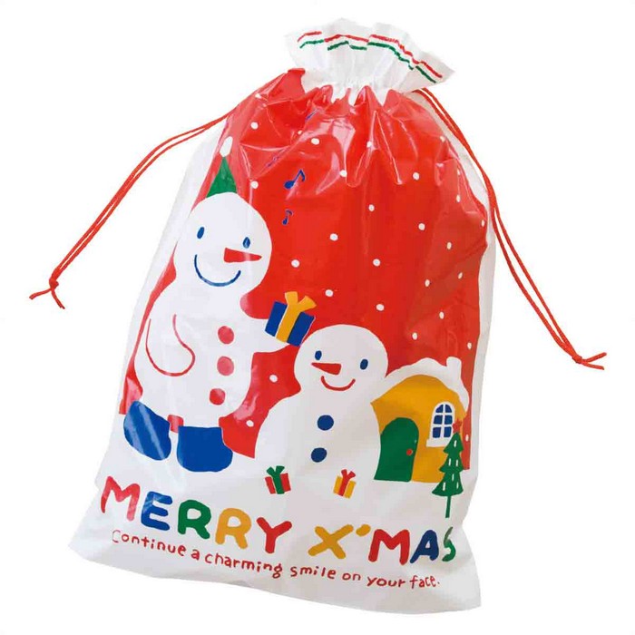 【20枚入り】スノーマン ポリ巾着ギフトバッグ 34×48(40)×底マチ8cm人気のスノーマンシリーズ!子ども向けのイベントなどにオススメ。クリスマス ギフト バッグ ラッピング 袋 おしゃれ 手提げ お菓子