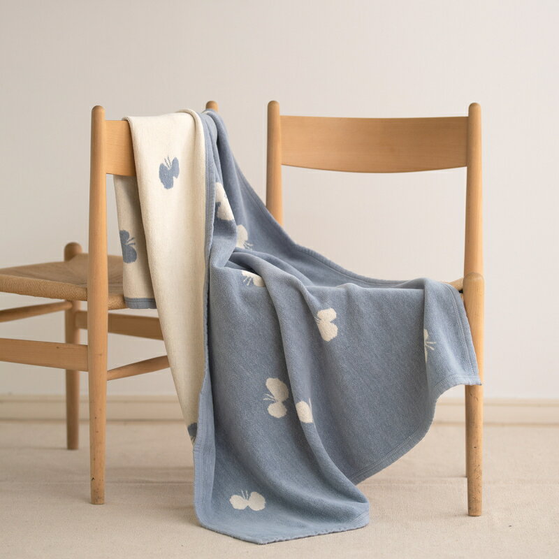 [KLIPPAN(クリッパン)] シュニールコットン ハーフブランケット CHOUCHO ブルー (90cmX140cm)