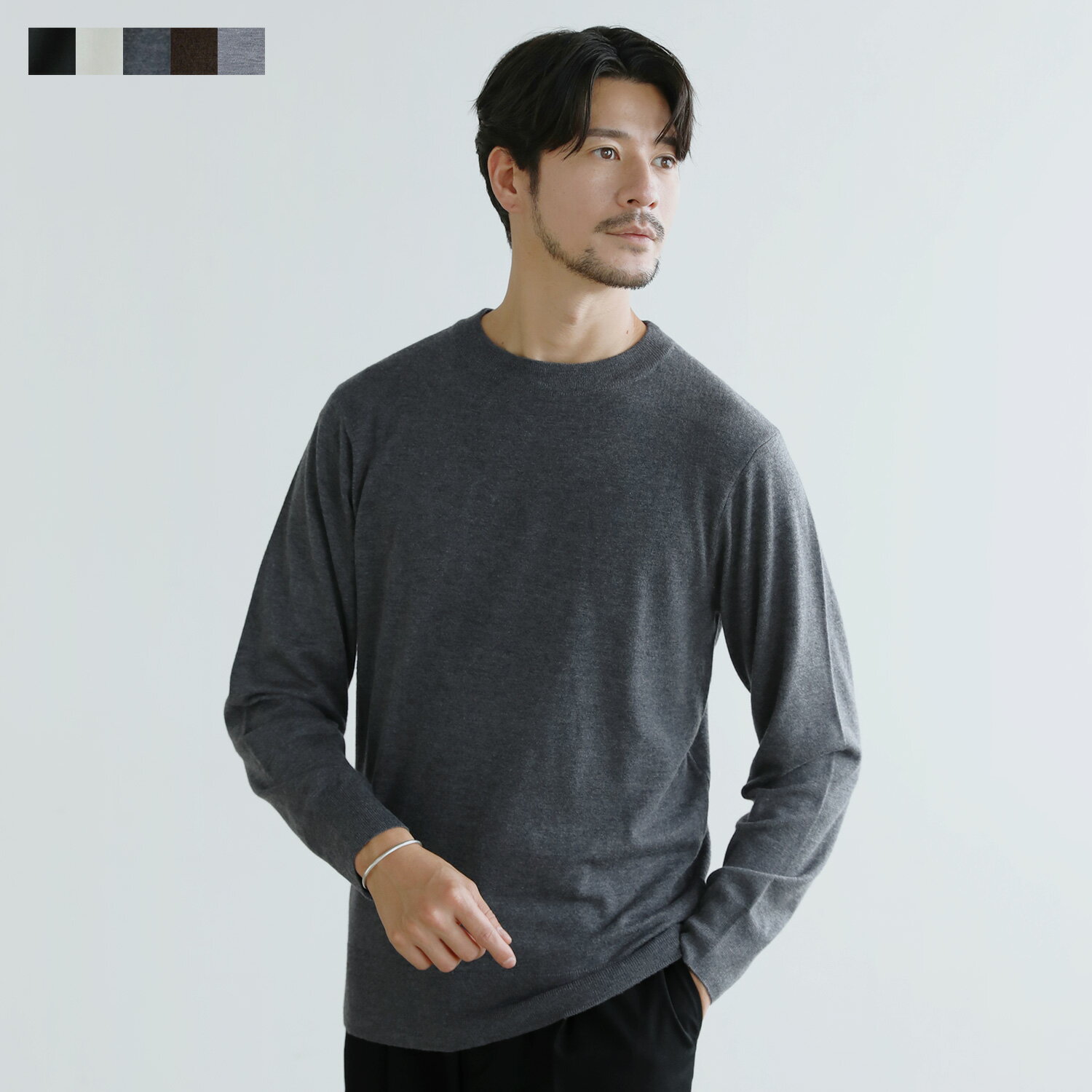 GIM / ジム|カシミヤシルク12Gクルーネックニット|(グレー)| 秋冬 セーター ハイゲージニット 丸首 カシミア メンズ ユニセックス 日本製 アウトレット