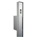 ■サイズ:W140 D318 H1500(GLより)mm■色:銀白色(メタリック)■材質:本体:アルミニウム、ステンレス 表札部:アクリル■重量:9.8kg■表札部:アクリルプレートが付属します。表札加工を行った場合、内部の光源により光る表札として機能します。■光源:40ワット電球型蛍光ランプ。■郵便受け部:前入れ、後出し。鍵付き(コインロック錠)容量16.2リットル。スペアキー付き。【その他】■インターホン子機は付属していません。■インターホン子機カバーはオプションです。希望のお客様はご注文の際、子機の型番をお知らせください。一部子機には対応できない場合がございます。■素彫表札(色文字なし)は本体価格に含まれます。 ※白いアクリル板に文字を彫り込んだだけとなり文字に着色はしておりません。 ※文字数に制限がございます。 ・漢字の場合、最大3文字まで ・ローマ字で大文字のみの場合9文字、小文字のみの場合10文字まで また、二世帯様表記及び漢字と英字表記等特殊な場合、別途表札特注費が発生いたします。特殊な場合はお問い合わせください。