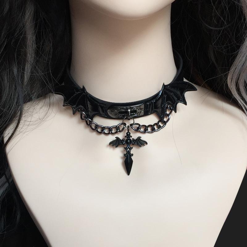 シンプル 短め カジュアル おしゃれ Y2K チョーカー ネックレス レディース サブカルチャー ダーク クロスチョーカー ネックレス ゴシック ヤ ビ 悪魔の 翼 パンク レザーネックレス アクセサリー