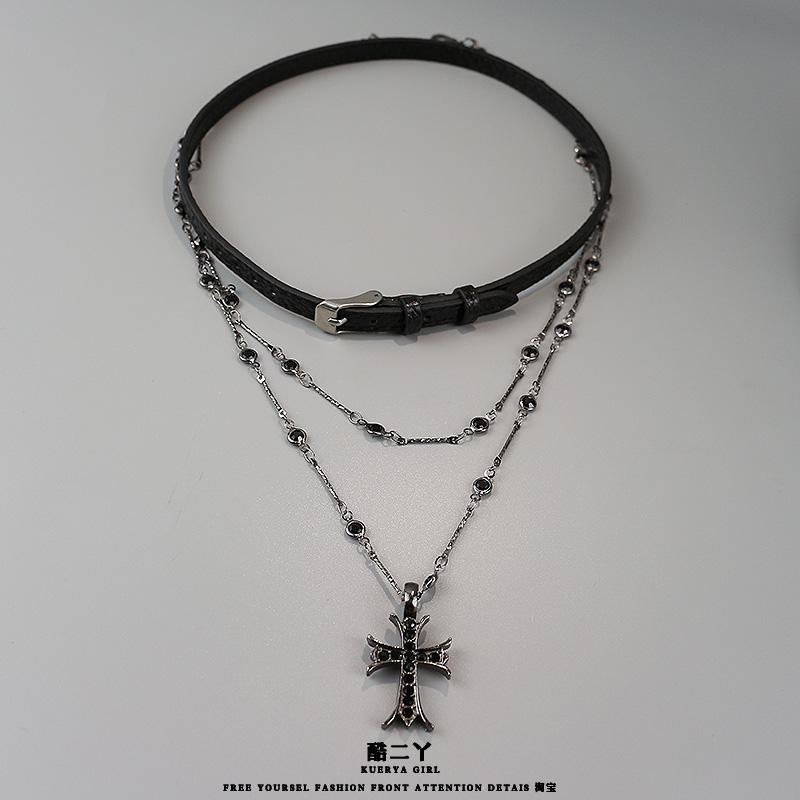 ゴシック調 レザー シンプル 短め カジュアル チョーカー アクセサリー レディース ブラック クロスチョーカー レディース ロング スタック Y2K ネックレス アクセサリー ハイエンド 鎖骨 チェーン 甘くて クールな