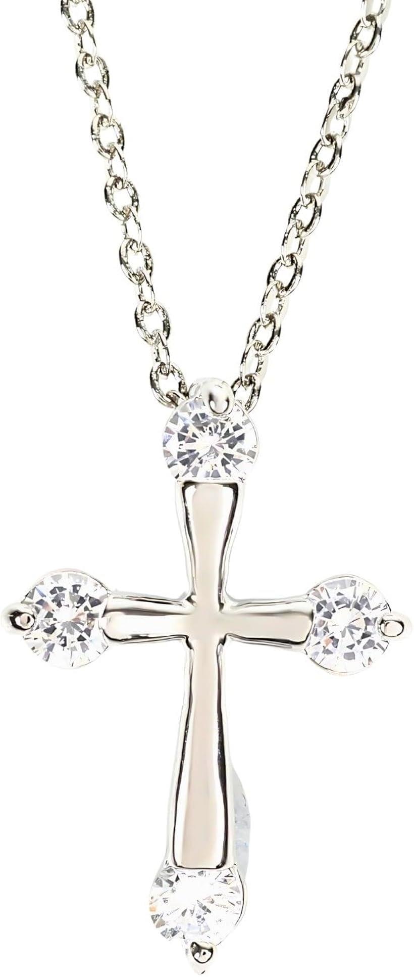 ミャオミャオ スーパー キュービックジルコニア シルバー クロス 十字架 ネックレス クロスチョーカー アクセサリー レディース プレゼント ボックス セット (シルバー, 小さめ)