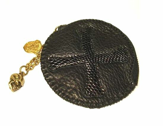 【...andMeat.】アンドミートコインケース/小銭入れ本革/トカゲ革ダメージ加工/クロスボーンスカルコインケースブラック【プレゼント/ギフト】【父の日 母の日】
