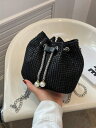 [ 8日から12日程度でお届け予定 ] バッグ レディース ハンドバッグ 1個 ファッショナブルな無地チェーンストラップミニバケツ型クロスボディバッグ、シルバーラインストーンエレガントなバンケットスタイルの輝くパールメタルチェーン軽量巾着バケツ型クロスボ