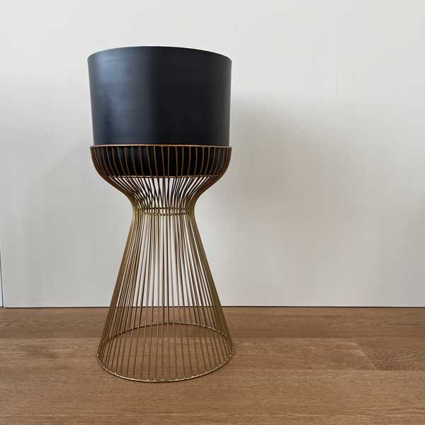 モダンな空間にも、エキゾチックな空間にも、様々なコーディネートに映えるデザインをプラス。 印象的で重厚感のある金属のテクスチャを活かしたシンプルなフォルムは、どんなコンセプトのスタイリングにもなじみ、よいアクセントを加えてくれます。 サイズはH45.5とH59.5の2種類です。 サイズ(全長)H59.5cm サイズ(スタンド)φ29×H43.5cm サイズ(ポット)φ29×H22.5cm 素材鉄 鉢底穴なし ご注意 ・ポットに、商品を塗装する際にフック掛けをして塗装を行われた為小さな穴がございます。予めご了承ください。 詳しくは画像にてご確認ください。 ・植物、アクセサリー等は商品に含まれておりません。 ・海外製品の為、サイズやデザイン、仕上がりに個体差がある場合がございます。予めご了承ください。 ■取扱時の注意、返品・交換について ※鉢・ポットなど商品シールを直接商品に貼っておりますので、シールを剥がす際に塗装が剥がれる可能性がございます。お取り扱いにはご注意ください。 ※ハンドメイド商品、輸入雑貨品、およびアンティーク調仕上品については、その味わいや風合いを楽しむ商品特性上、若干のキズや汚れなども商品の製造工程および品質上の「仕様」と考えられます。 当店の商品はメーカーの検品をクリアしたA級品のため、返品・交換はできかねますのでご了承ください。 ※ハンドメイド商品の現品サイズはその製造工程によりご購入時の商品ページに記載のサイズ表記と若干の誤差が生じる場合があります。 ※ご使用に支障をきたさない「傾き」「歪み」「ひび」「欠け」「割れ」「使用感」「色誤差」「風合い」「イメージ相違」等がある場合があります。 ※ガラス製品に気泡が見られることがございます。特に海外輸入製品などは昔ながらの手法で作られているものも多く、このような現象が起こることがあります。 これは商品の製造工程および品質上の「仕様」であり「傷・破損」ではありません。モダンな空間やエキゾチックな空間にも使えるオリジナルセレクトアイテム。 シンプルなフォルムや、重厚感漂う仕上がりは、馴染みがよく印象的なコーディネートが完成します。 ブラックカラーのポットにゴールドがアクセントのスタンド付きポット くびれのあるスタンドのシャープなデザインとゴールドカラーが植物をより引き立ててくれます。 ポットの内径は約28cm。6.5〜8号の鉢がおすすめです。 小さな植物から存在感のある大きな植物にも 使用植物:ラフィドフォラ テトラスペルマ スタンドと鉢カバー部分は取り外しが可能 サイズはH45.5とH59.5の2種類です