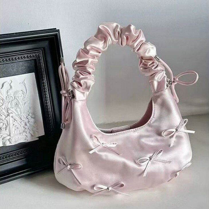 【半額クーポン対象】サテン リボン バッグ 持ち手シャーリング 小さめ ガーリー きれいめ かわいい オールシーズン おすすめ レディース オシャレ トレンド 人気 プチプラ 韓国ファッション 【akb503-059】【予約販売:15-20日】【送料無料】宅込