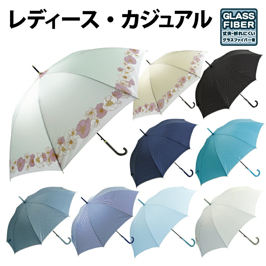 傘 レディース かさ 長傘 雨傘 婦人 女性用 58cm 60cm ジャンプ グラスファイバー骨 丈夫 ドット ストライプ 花柄 パイピング 送料無料