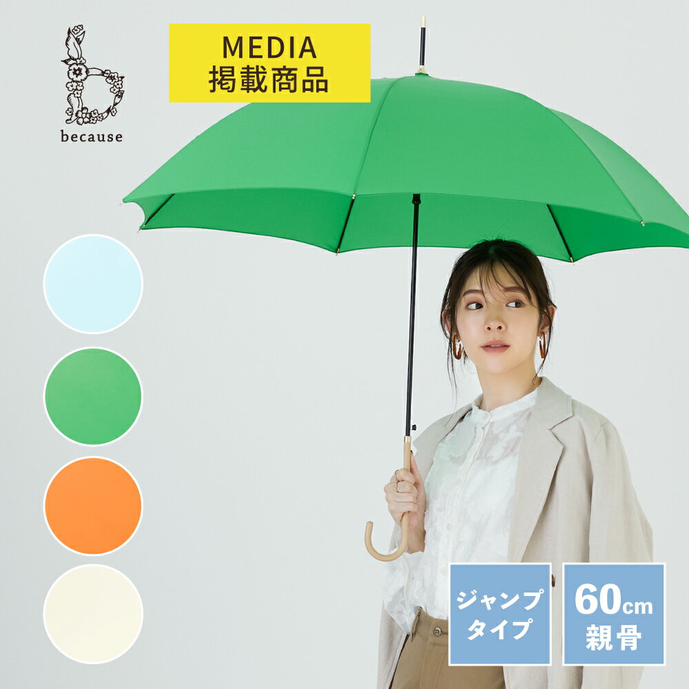 【because 公式】【メディア掲載アイテム】プレーンカラージャンプ ジャンプ傘 長傘 雨傘 傘 UVカット 撥水 レディース 女性 60cm 通勤 通学 ビコーズ シンプル ワンタッチ 晴雨兼用 グラスファイバー 大人 ギフト プレゼント おしゃれ | 無地 UV対策 軽量