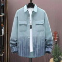 シャツ メンズ グラデーション カラー プリント 長袖 カジュアル シャツ ジャケット 薄手 春秋 ポリエステル ホワイト グリーン(x2)