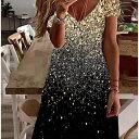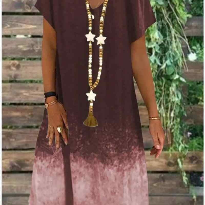 Tシャツワンピース レディース 女性用 ミディ丈 Vネック 半袖 グラデーションカラー プリント ベーシック シンプル デイリー 普段使い リゾート バカンス 春夏 Aライン 快適 カジュアル