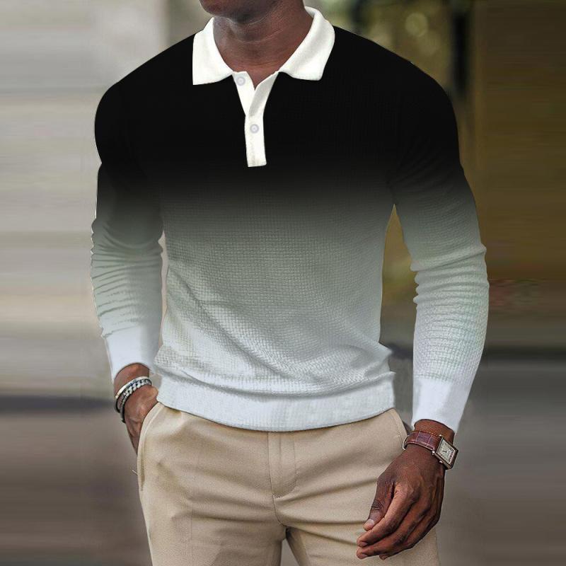 ポロシャツ メンズ 通気性 快適 長袖 グラデーションカラー プリント柄 総柄 ゆったり オーバーサイズ ルーズシルエット カジュアル ストリート 欧米風 アメカジ ファッション ポリエステル 春秋 デイリーユース 普段着
