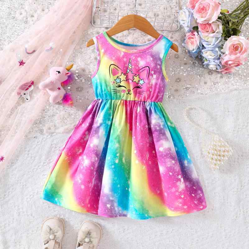 ・スタイル: スイート・主な素材: ポリエステル・主な素材混率: 88%・カテゴリ: ワンピース・性別: 女の子・年齢: 3~8歳・身長目安: 100~140cm・柄: カートゥーン・袖丈: ノースリーブ・スカートシルエット: Aライン・デザイン: キュート・カラー展開: マルチカラー・サイズ展開: 2-3Y, 4Y, 5Y, 6Y, 7Y