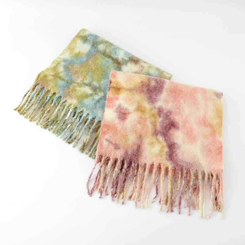 スカーフ レディース 女性用 モヘア ポリエステル 厚手 保温 防寒 ロング グラデーションカラー プリント ブークレ織り ストール マフラー スヌード 冬 秋冬 ビジネス カジュアル エレガント オフィス ピンク グリーン