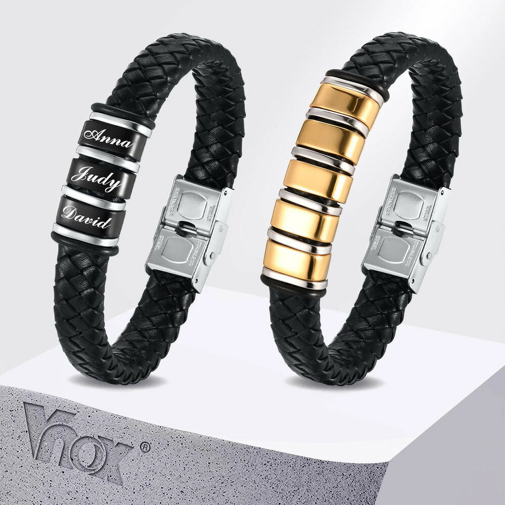 【送料無料】 ブレスレット ステンレス レザー ビーズ ネーム メンズ フリー パーソナライズ 家族 ファミリー スチール ギフト お父さん DAD グランパ リストバンド クリスマス