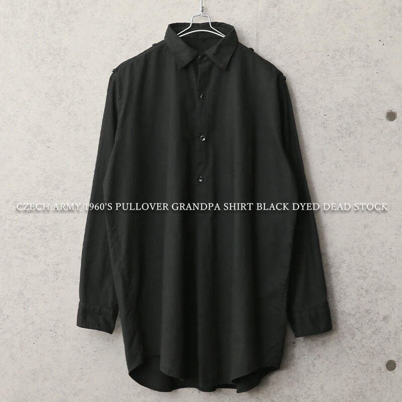 実物 新品 デッドストック チェコ軍 1960’s プルオーバー グランパシャツ BLACK染め【クーポン対象外】【I】