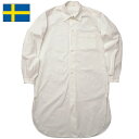 スウェーデン軍 グランパシャツ 4ボタン デッドストック JS175NN ホワイト 長袖 スリーピングシャツ 白 ロング丈 メディカルプルオーバー メンズ 裾長 ロングスリーブ パジャマシャツ ラウンドボトム カジュアルシャツ