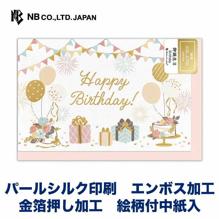 エヌビー社 カード グレル 誕生日 会場 | バースデーカード パールシルク印刷 エンボス加工 金箔 洋形3号封筒 メッセージ おしゃれ 御洒落 オシャレ カワイイ かわいい 可愛い 男の子 女の子 お誕生日 ハッピーバースデー HAPPYBIRTHDAY プレゼント 通年 ケーキ