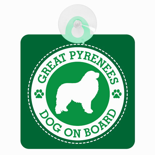 セーフティサイン DOG ON BOARD GREAT PYRENEES グレート・ピレニーズ グリーン 安全運転 車内用 吸盤タイプ 煽り運転対策 収れん火災防止タイプ 安全対策 カーサイン 吸盤 肉球マーク