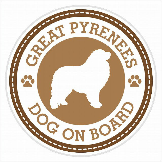 セーフティサイン ステッカー Dog on board GREAT PYRENEES グレート・ピレニーズ ブラウン 直径13cm あおり運転 対策 カーステッカー シール 煽り運転対策 自動車用 屋外 屋内 防水 かわいい おしゃれ 安全対策 カーサイン 肉球マーク