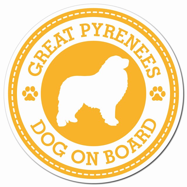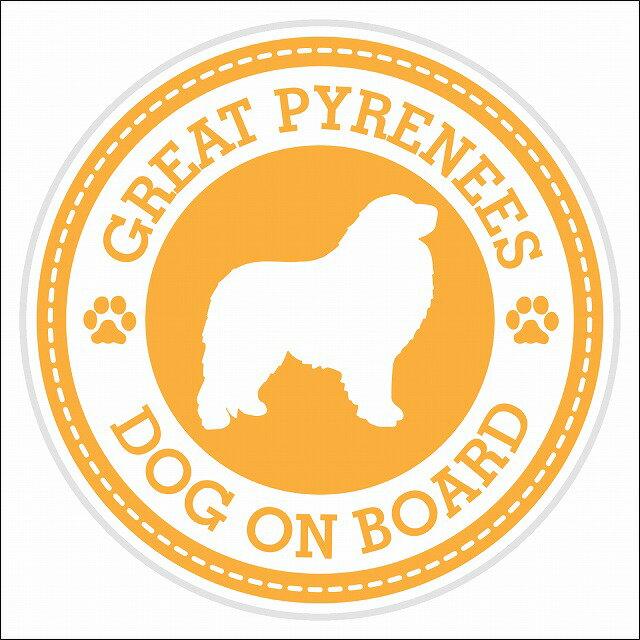 セーフティサイン ステッカー Dog on board GREAT PYRENEES グレート・ピレニーズ イエロー 直径13cm あおり運転 対策 カーステッカー シール 煽り運転対策 自動車用 屋外 屋内 防水 かわいい おしゃれ 安全対策 カーサイン 肉球マーク