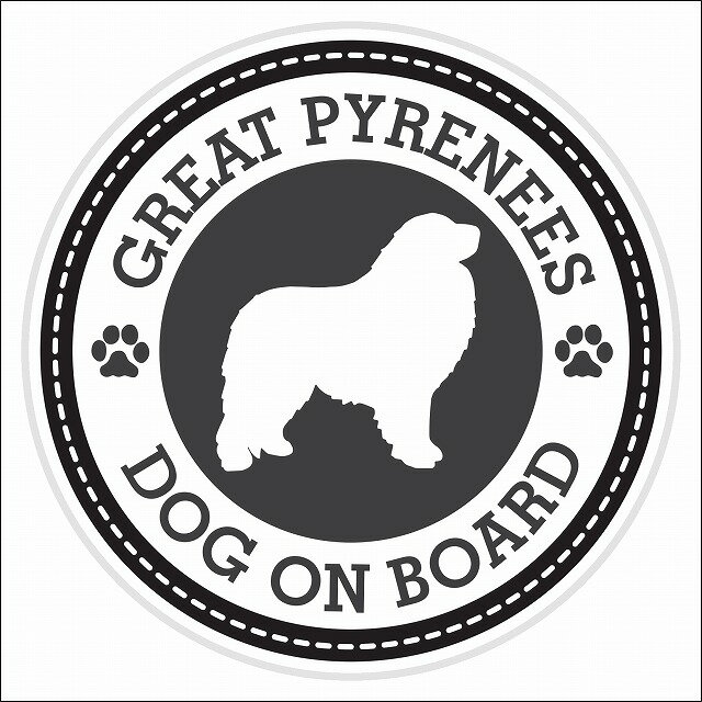 セーフティサイン ステッカー Dog on board GREAT PYRENEES グレート・ピレニーズ ブラック 直径13cm あおり運転 対策 カーステッカー シール 煽り運転対策 自動車用 屋外 屋内 防水 かわいい おしゃれ 安全対策 カーサイン 肉球マーク