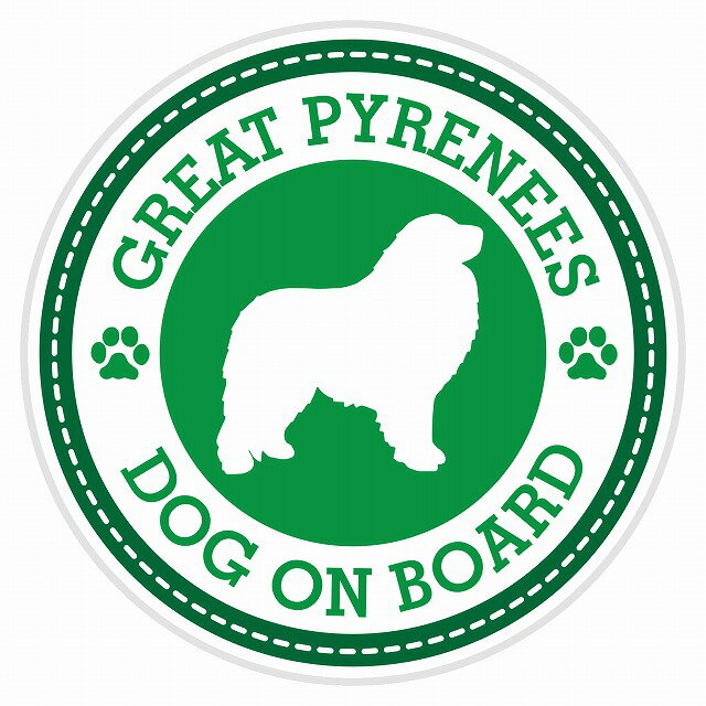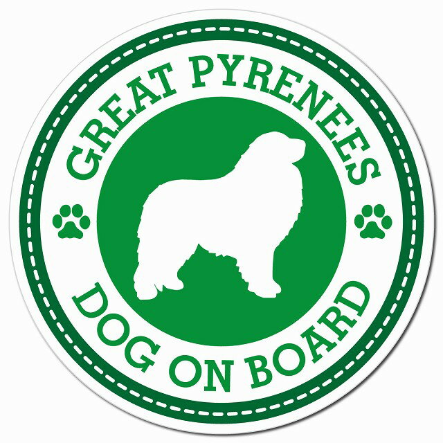 セーフティサイン ステッカー Dog on board GREAT PYRENEES グレート・ピレニーズ グリーン 直径13cm あおり運転 対策 カーステッカー シール 煽り運転対策 自動車用 屋外 屋内 防水 かわいい おしゃれ 安全対策 カーサイン 肉球マーク