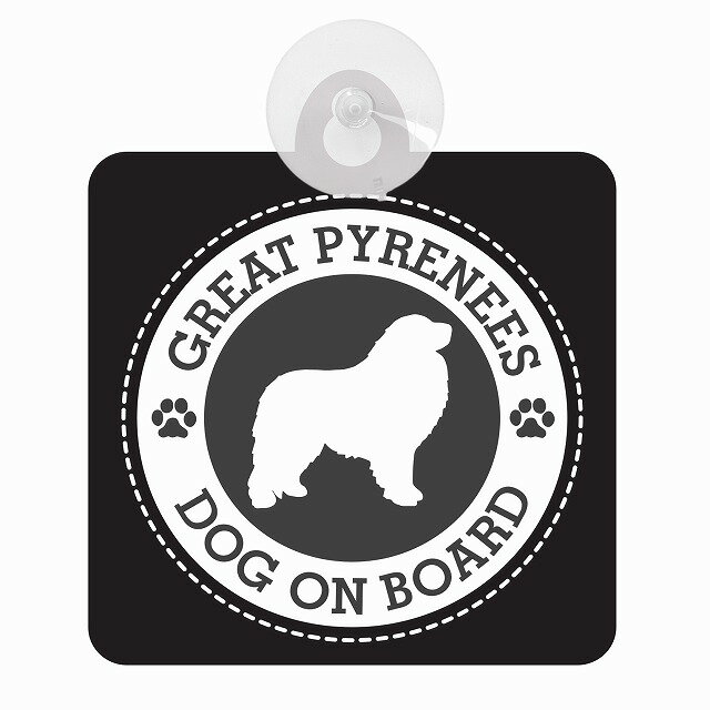 セーフティサイン DOG ON BOARD GREAT PYRENEES グレート・ピレニーズ ブラック 安全運転 車内用 吸盤タイプ 煽り運転対策 収れん火災防止タイプ