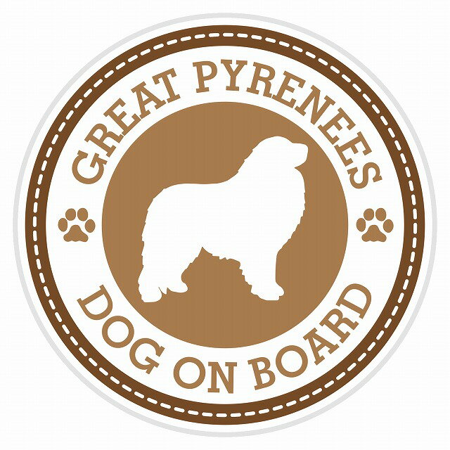 セーフティサイン ステッカー Dog on board GREAT PYRENEES グレート・ピレニーズ ブラウン 直径13cm あおり運転 対策 カーステッカー 煽り運転対策 自動車用