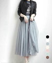 チュールスカート ロングスカート シンプル ボリューム 大人 体型カバーふんわり