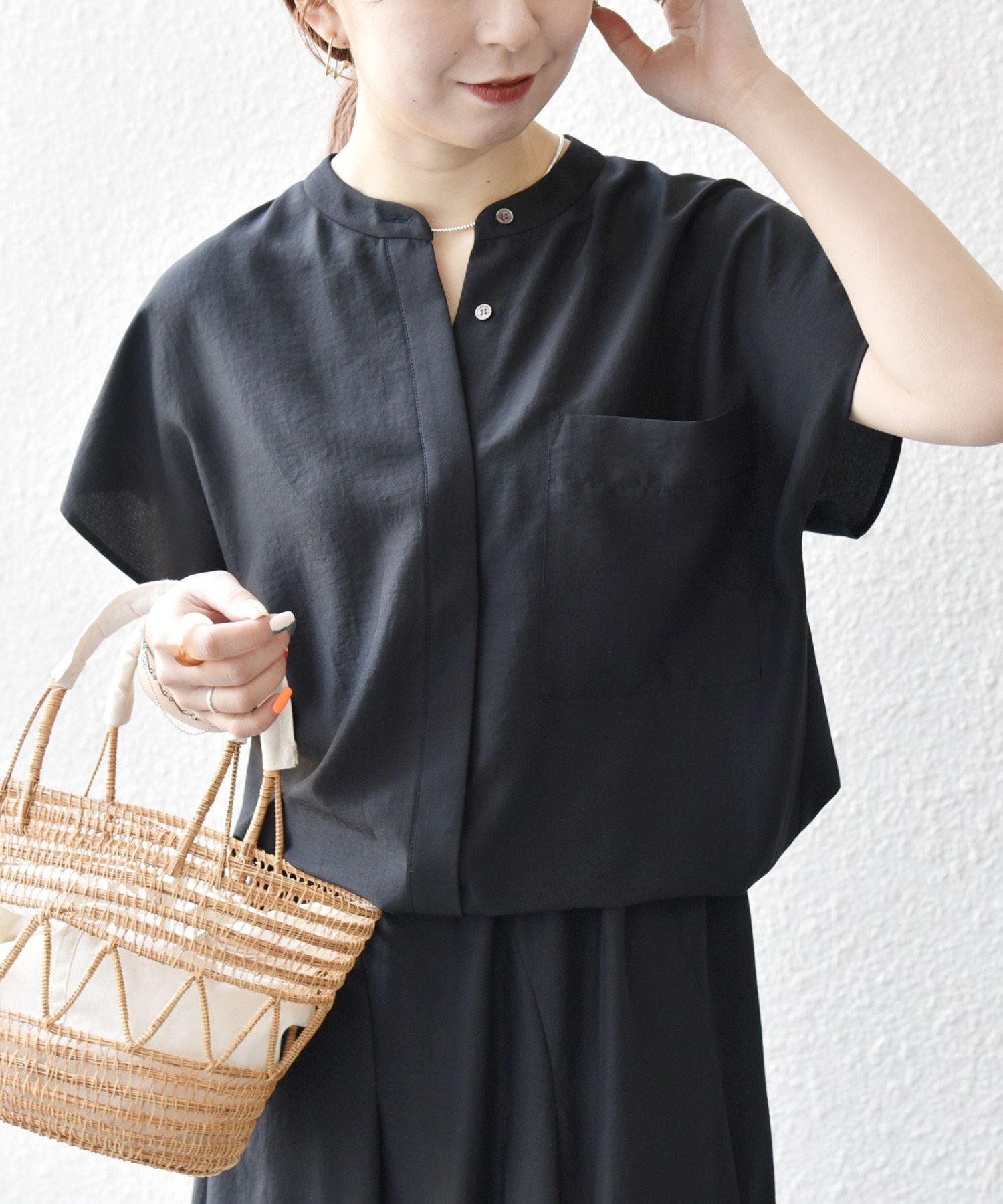 SHIPS any SHIPS any:<洗濯機可能>グロッシー ドロスト バンドカラー フレンチ シャツ シップス トップス シャツ・ブラウス グリーン ブラック【送料無料】
